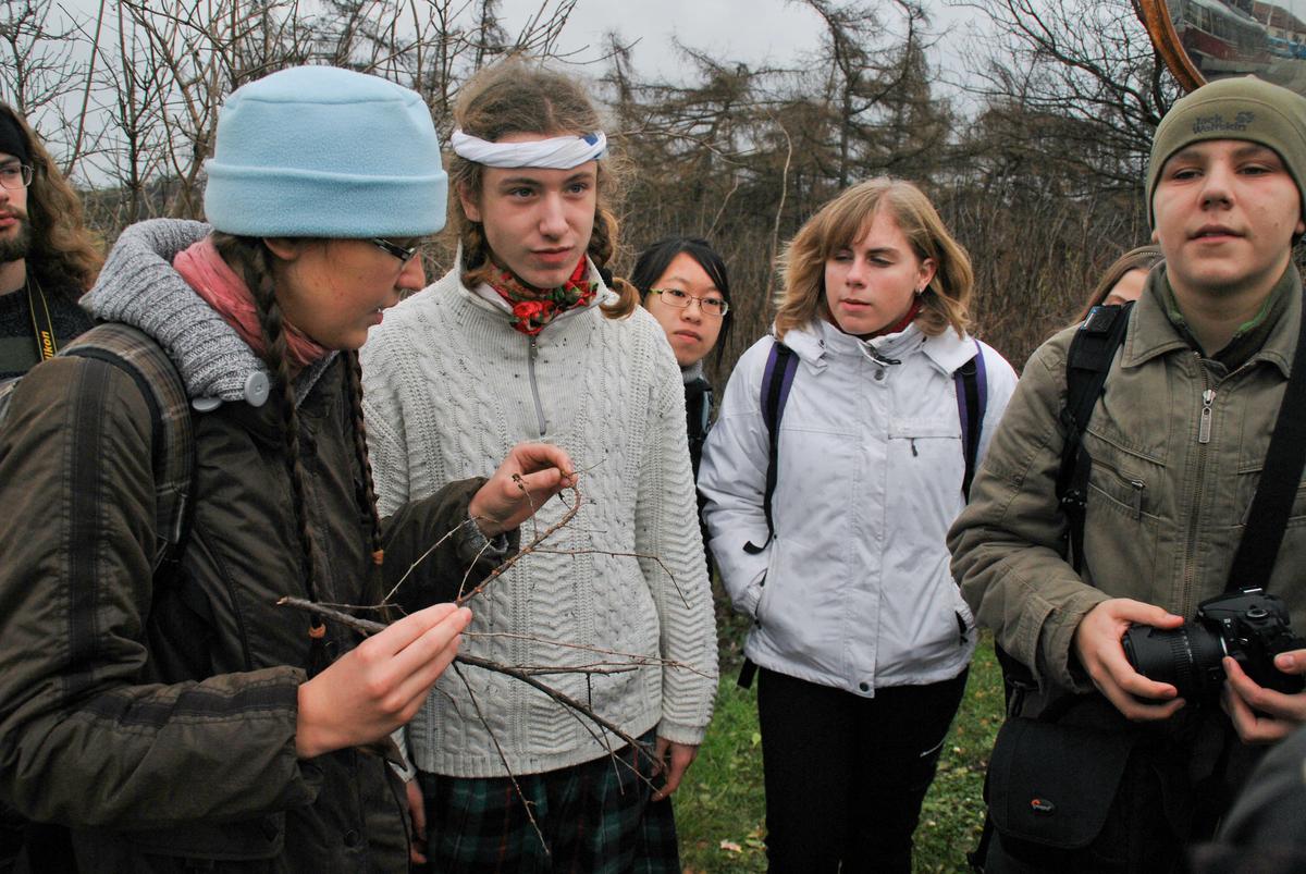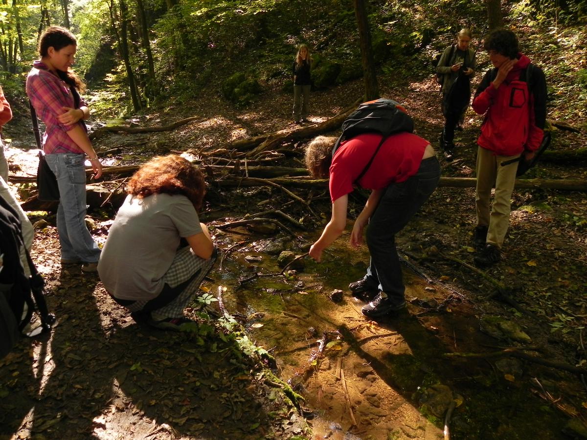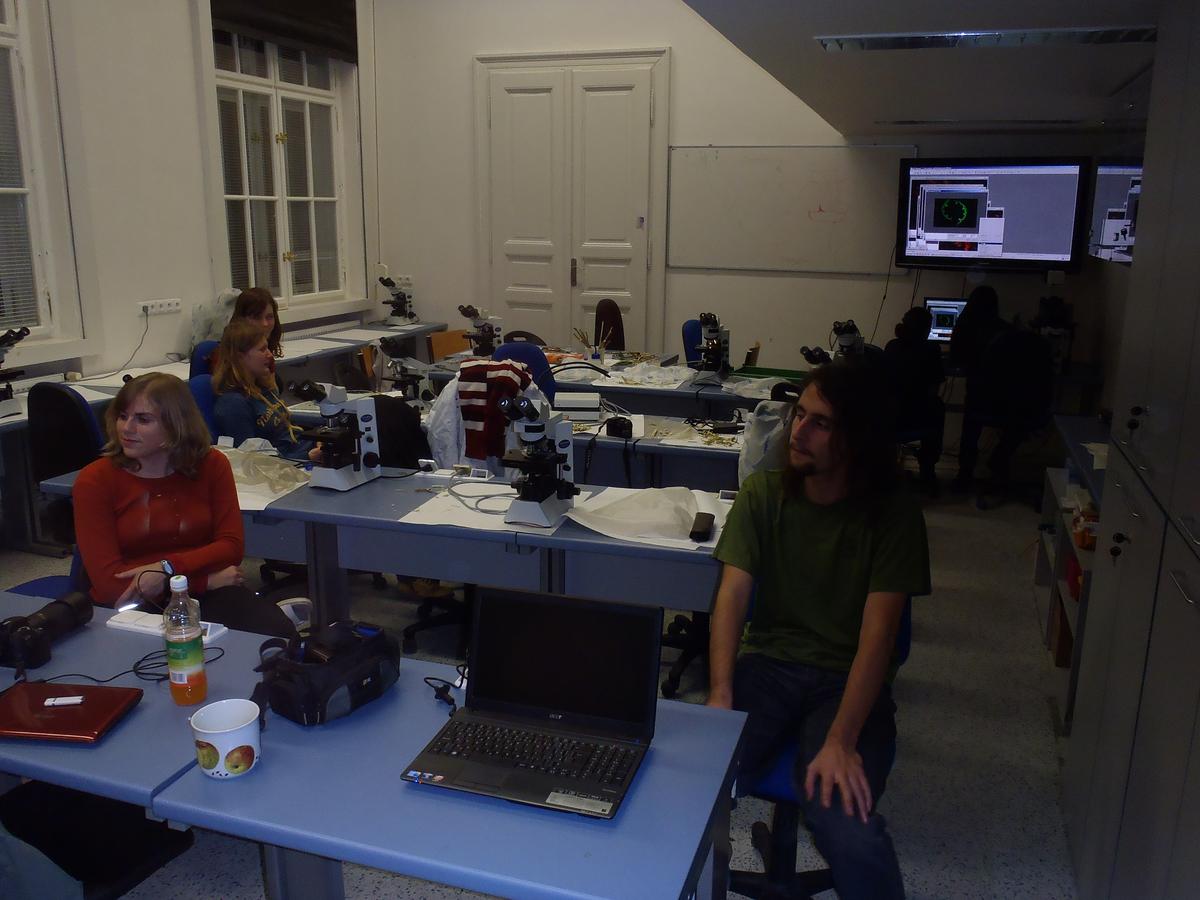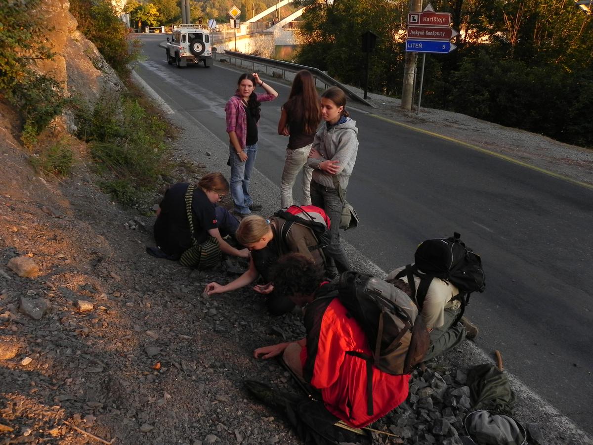 V sobotu vstáváme brzy a jdeme na Hlavák, odkud se vyráželo směr Beroun. Postupně jsme sestupovali směrem k zemskému jádru ve velkolomu Čertovy schody, přičemž jsme se dostávali do oblastí s čím dál starobylejší faunu - na začátku cesty jsme potkali silurské či devonské hlavonožce a uprostřed ordovické graptolity. Až na úplném dně nás poněkud překvapil recentní rak bahenní. Při exkurzi byla nalezena peněženka nějakého Jandíla (a myslím, že ne poprvé a naposled) :) Část skupiny se vydala hledat majitele peněženky. Ten byl nalezen, ale účastníci byli rozptýleni po okolí. Shromáždili se až u posedu, na který Míša vylezl s napřaženou smýkačkou a posvětil tento posed písní Rorippa. Pak se rychlým tempem pokračovalo až do obce Srbsko. Tam se za peníze věnované nám Jandíkem nakoupily nanuky a predovaly se. Večer se pod mikroskopem sledoval především různý pyl a řezy kapradinami.