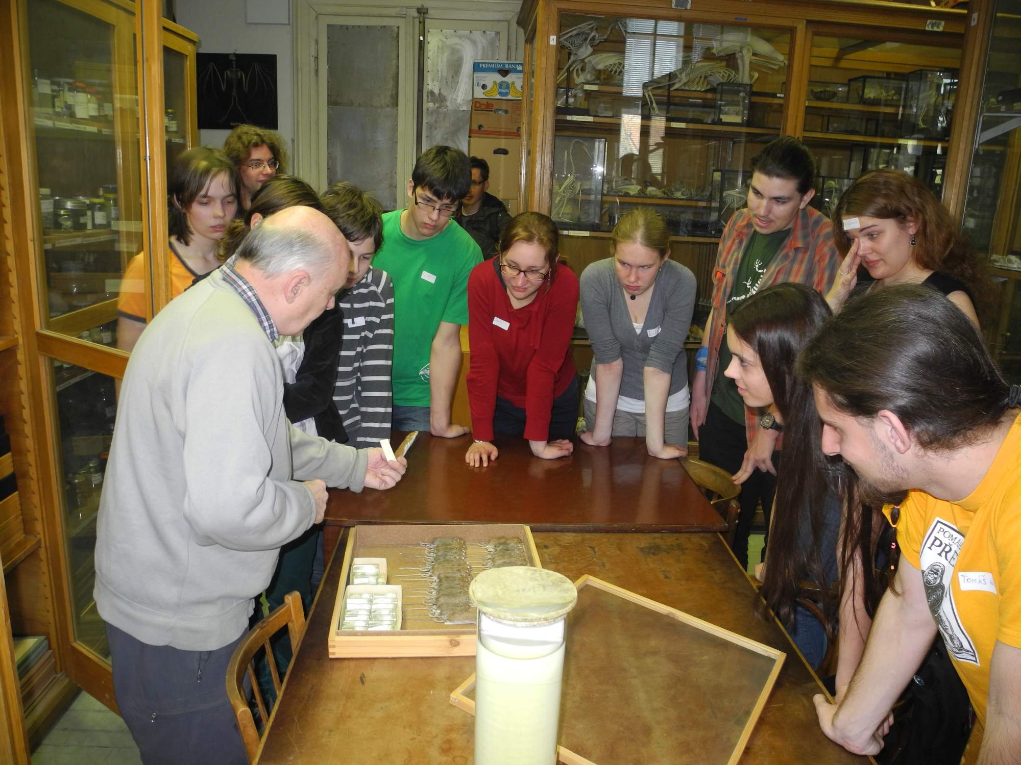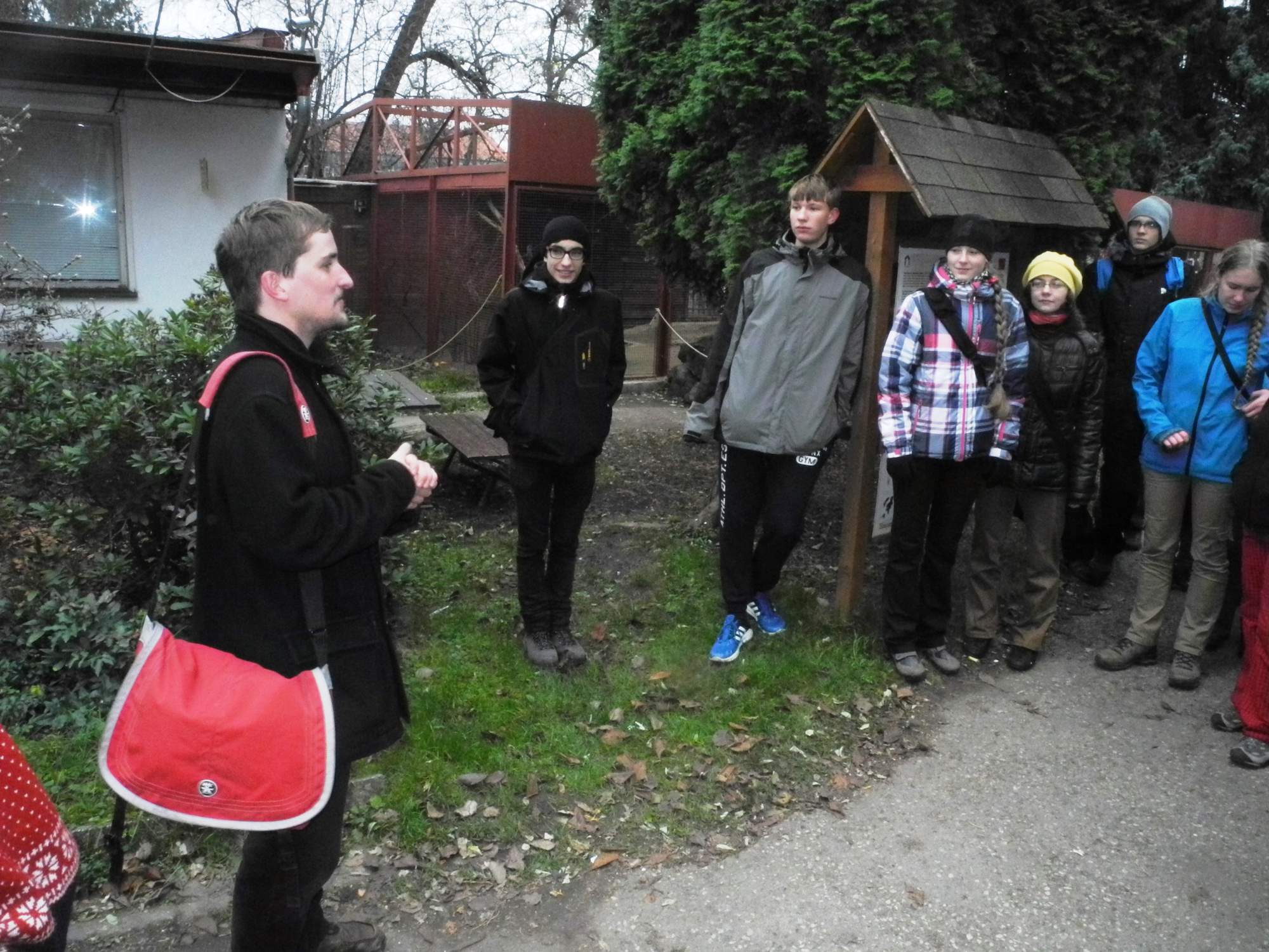 V sobotu se již v 9:00 vyrazilo na exkurzi do skleníku Stanice přírodovědců, abychom se podívali na tropickou biodiverzitu. Jelikož jsme se ranní Prahou pohybovali poněkud rychleji, než bylo odhadováno, tak jsme nejdříve museli počkat na Karla Kodejše, který byl tou dobou lokalizován na jiné lokalitě. Čas jsme využili ke hraní několika her – např. Na bombu nebo Na vikinga. Následně nás Karel potom provedl po stanici. Viděli jsme například stříkouny lapavé (Toxotes jaculatris), kterým Karel hodil pár švábů a tak jsme měli možnost je pozorovat přímo v lovecké a predační akci, dále spoustu roztomilých druhů hadů, kajmany… Měli jsme radost, že jsme měli možnost pozorovat tolik roztomilých myyyšiček a další biodiverzity. Vtipný byl zoofilní lamák, který soupeří o harém malých klisniček s poníkem.
