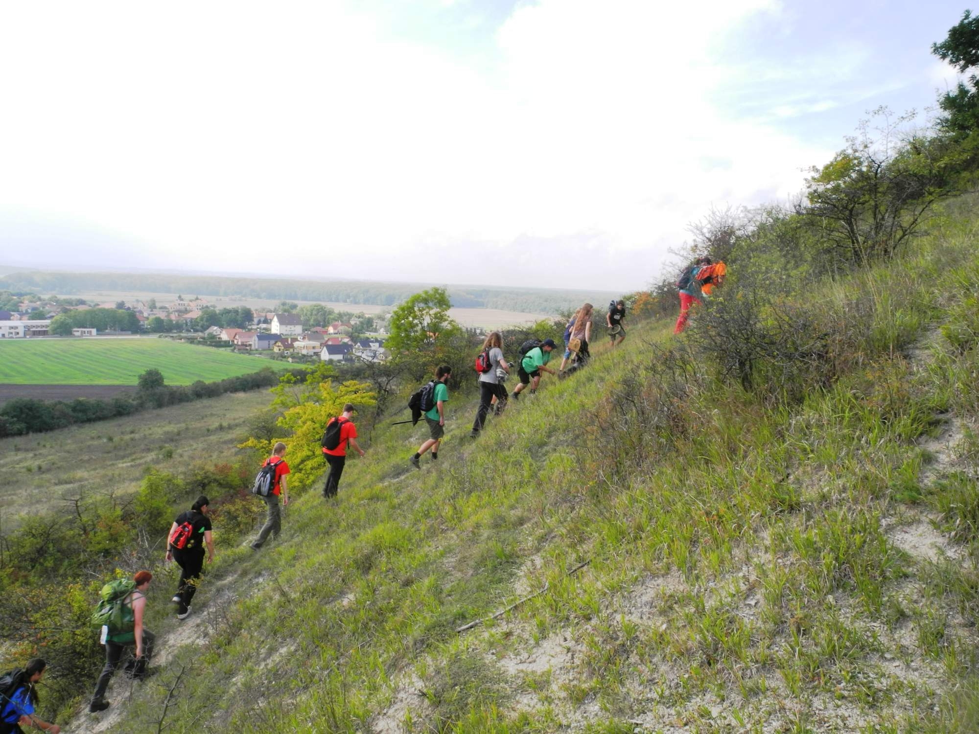 Poté jsme zamířili k Přerovu a našemu dalšímu cíli -- Přerovské hůře. Na jejím vrcholku opět následovalo lovení biodiverzity -- obzvláště velký úspěch měly místní kudlanky. Sestup z hůry byl veden proti gradientu, což v kombinaci se spadaným listím a bahnem vedlo k názoru, že by nebyl špatný nápad s sebou vzít sáně. Naštěstí ale všichni sestup přežili ve zdraví, i přesto že nás první pokus zavedl do čísi zahrádky. Pak už následoval přesun na nádraží v Lysé, kam jsme dorazili v pravou chvíli, neboť těsně po našem příchodu se spustila průtrž mračen, jejíž příchod jsme očekávali už na hůře. Cestu zpět nám ještě zpestřila paní, které se tak moc zalíbili ideologické písně zpívané ve vlaku (obzvláště Dej gorilám), že si na organizátory vzala kontakt, aby jí mohli poslat texty.