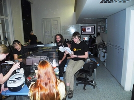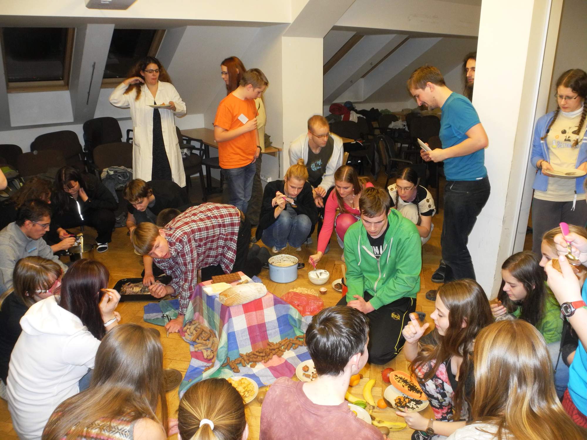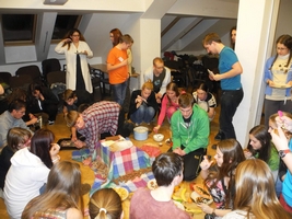 "A víte, že jmelí je cizopasník?" "Ale jděte!" A dokonce existuje druh, spoléhající při svém rozšiřování na jeden jediný druh ptáka, se kterým žije v těsné spolupráci. Tak třeba tohle jsme se mohli dozvědět na přednášce o parazitických rostlinách od Hany Maškové. Touto přednáškou byl zakončen páteční odborný program. Zájemci ještě byli zasvěceni do používání a fungování flourescenčního mikroskopu a krátce nato už se houf nadšených účastníků jal připravovat preparáty. Současně s tím se rozproudila hromadná exprese, jež pokračovala celý zbytek večera, noci a i rána.