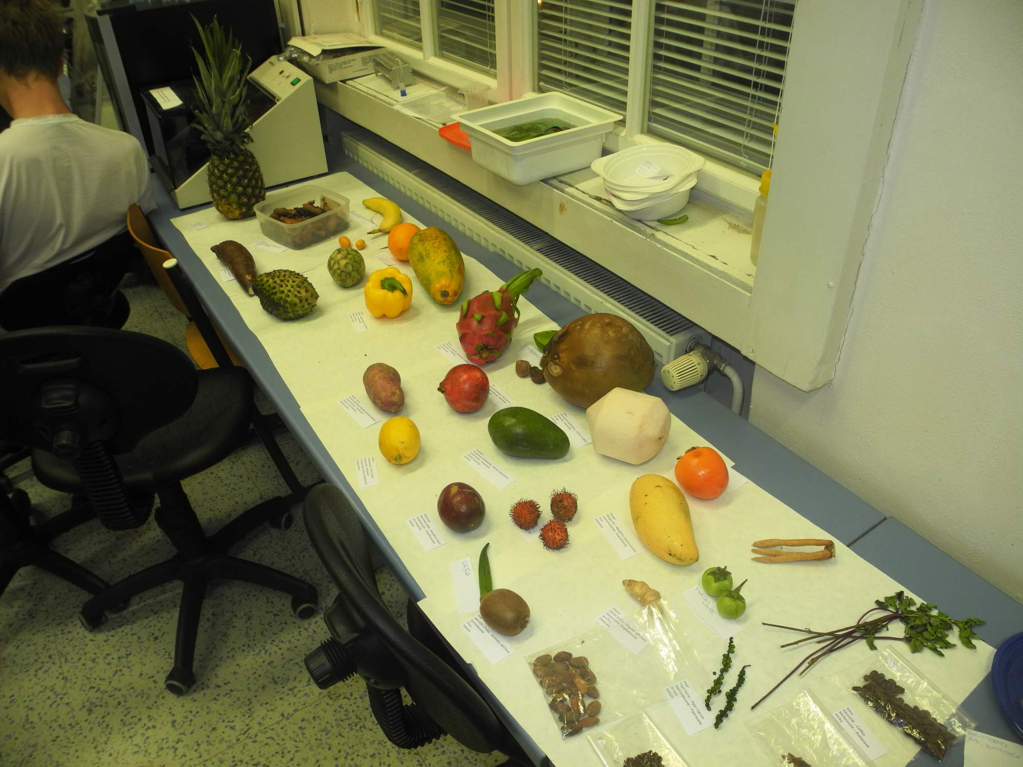 V neděli ráno byla pitva tropického ovoce (s nepovinnou, ale přesto nad očekávání hojnou účastí). Albert Damaška potom povídal o tropické fauně a po obědě jsme se šli podívat do skleníku PřF UK, kde hned první strom, který jsme při vstupu do skleníku spatřili, byl tamarind.