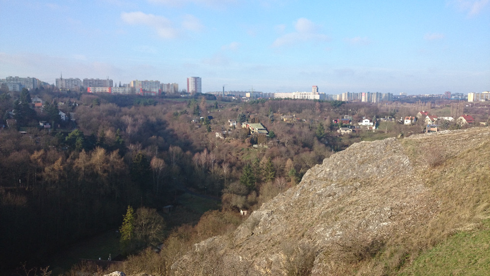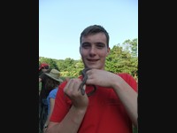 Následujícího dne jsme pak opustili nízkou biodiversitu Nového Města pražského a vlakem jsme se přesunuli do biologicky mnohem zajímavější oblasti Českého krasu. Po krátké cestě, během níž se naše skupina střetla tváří v tvář s personifikovanou lidskou hloupostí (velmi eufemisticky řečeno), jsme dorazili na lokalitu Zlatý kůň, kde mnozí z nás spěšně vytáhly smýkačky a počali shromažďovat biodiversitu pro oddemonstrování. Hned z kraje exkurze jsme tak měli možnost poznat řadu zástupců bezobratlých, jejichž ukázka byla prokládána botanickým výkladem. Poté jsme již nasadili biologické tempo, tedy rychlost optimalizovanou pro pozorování biodiversity, a vydali se do lomu samotného. Tam proběhla individuální predace vlastních zásob a především pak hledání bývalé biodiverzity, dnes však pouze geodiverzity – fosilií prvohorních bezobratlých, především trilobitů, lilijic a hlavonožců. Za krásného počasí a zpěvu skřivanů polních jsme se následně přemístili až do částečně zatopeného lomu Kosov, který hostí stabilní populaci raka bahenního. Několik exemplářů zde bylo skutečně nalezeno a všichni účastníci tak mohli pozorovat, že se vskutku jedná o krásné myšičky sensu lato. Jediným pozorovaným zástupcem obratlovců, vyjma účastníků exkurze, byl samec ještěrky obecné, který se ukázal být vděčným fotografickým objektem. Tlačeni časem a nabitým programem Fluorescenční noci jsme se však museli opět vrátit na Viničnou, k predaci kebabu a následné noční přednášce Míši a Alberta o páté ideologické entomologické expedici. Jejich povídání o Thajsku bylo jako vždy nejen správně biologicky poučně, ale jak už je zvykem, rovněž zábavné. Okolo π hodin (někteří i dříve) jsme pak všichni ukončili akustickou expresi ve stoosmě a dopřáli si alespoň pár hodin spánku.