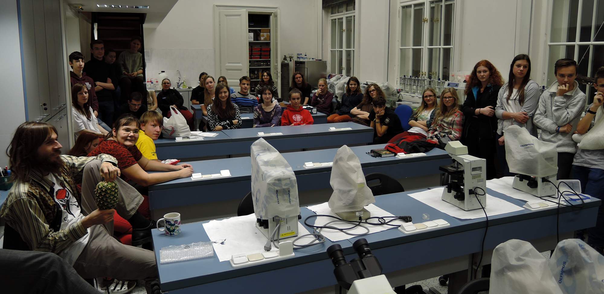 Je predposledný deň vo februári (resp. únoru ako sa toto obdobie označuje v západnejšej časti Vratislavíc) a konečne opäť nastal ten dlho očakávaný moment, kedy sa zišli biofilne či biomilne orientovaní jedinci a tematicky sa v poobedných hodinách združili na Viničnej 7. Po registrácii nás čakala prvá prednáška s názvom Eukaryogeneze, v ktorej Vladimír Hampl predstavil súčasné teórie o pôvode eukaryotickej bunky. Nasledovala krátka pauza, po ktorej Tomáš Pánek hovoril o mnohobunečnosti a jej menej známych príkladoch. Všetci potom vytvorili v legendárnej miestnosti 108 cirkulárny útvar a starí štangasti aj noví účastníci sa začali predstavovať. Hneď po predstavovaní nastala doba predačná a všetci sa netrpezlivo vrhli na kuskus a odvážnejší či alliofóbni jedinci okoštovali dokonca aj fufu.