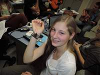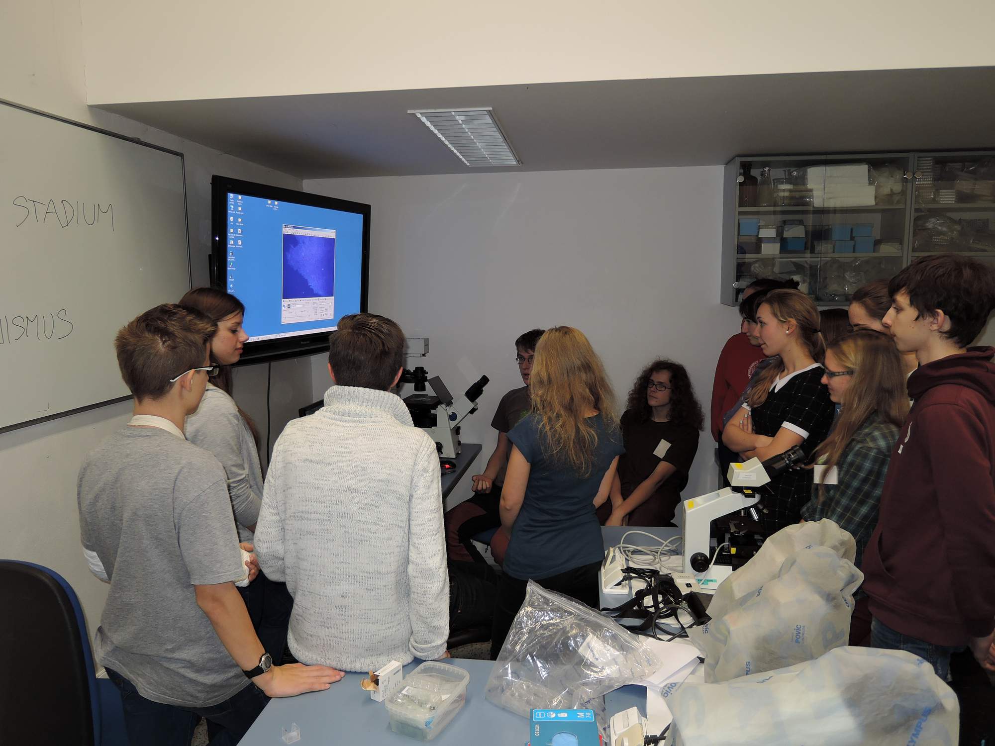 Po přednášce jsme měli možnost mikroskopovat a následně naše výtvory nahrát na wikipedii, na fluonoc totiž přišli wikipedisté, kteří byli velmi ochotní, všechno ohledně wikipedie nás naučili a vysvětlili. Byla to velmi zajímavá zkušenost a ještě jsme dostali višňovou taštičku jako dárek. Byla moc dobrá.