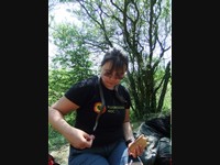 Postupně nám také hromada odstraněné biomasy tak trochu začala přerůstat přes hlavu a příliš rozšiřovat svou základnu na úkor vyčištěných ploch. Ti nejodvážnější se prodrali až na její vrchol a hromadění biomasy začali strukturovat. Brzo po zaslouženém obědě jsme už práci pomalu dokončovali. Pod nahromaděnou biomasou vznikla krásná jeskyňka a nahoře na ní bylo možné občas pozorovat velmi nebezpečně vypadajícího Zbojníka. Při odchodu z lokality jsme se mohli pokochat množstvím vyčištěného prostoru a malebnou agregací přesunuté biomasy. Ani jsme nečekali, že toho zvládneme udělat tolik.
