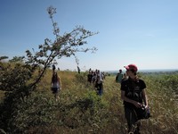 Druhý den jsme stávali poměrně brzy a po snídani jsme vyfasovali větší množství hrábí a menší množství pil, sekyr a pákových zahradních nůžek. Někteří účastníci si přivezli vlastní nářadí a tak jsme byli vybaveni poměrně slušně. V zástupu jsme se vydali na Smíchovské nádraží. Někteří lidé se nad naším vybavením podivovali a považovali nás za zahradnickou školu. Panu řidiči autobusu, který nás dopravoval z Radotína do Kosoře, se nezamlouvalo, že bychom se svými nástroji měli nastoupit do autobusu, ale naštěstí to vyřešil tím, že nám ač v městském autobusu otevřel spodní zavazadlový prostor, kam jsme mohli nářadí uložit. Bezpečnost našeho transferu tak byla zvýšena jak pro nás, tak pro naše cestující.