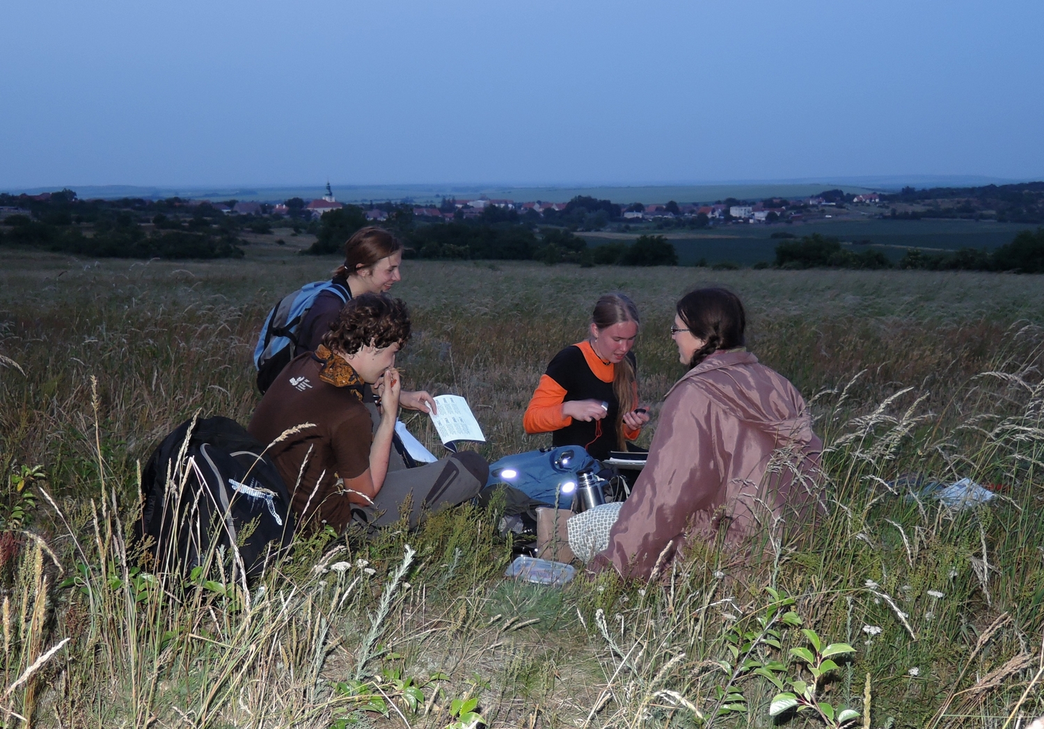 První skupinka biologů se blížila k faře v Havraníkách. Bylo odpoledne 29. května a všichni se těšili na další Fluorescenční noc. Jistě Vás zarazilo, proč jsme nebyli, jako vždy, v budově Přírodovědecké fakulty UK ve Viničné 7. Odpověď je prostá – tato fluorescenční noc byla výjimečná, neb se jednalo o první výjezdní fluorescenční noc. Takže jsme se sešli na faře v malé vesničce Havraníky, která leží na samé hranici Národního parku Podyjí. Během odpoledne se vydala první malá skupinka zájemců prozkoumat blízké vřesoviště. Ani jsme nevyšli z vesnice, když jsme narazili na dva rybníčky se zajímavou biodiverzitou. Kromě vážek, vírníků a dalšího hmyzu se tu podařilo ulovit i několik malých užovek obojkových a kuněk obecných. Vřesoviště bylo zajímavé hlavně botanicky, ale dala se zde často zahlédnout i krásná ještěrka zelená. Na ty, kteří si přáli zahlédnout vzácného dudka, se usmálo štěstí hned první den – jeden pěkný dudek nám přelétl nad hlavou a zmizel v nedalekých korunách stromů. Prohlídku vřesoviště jsme ukončili posezením u posedu, který se prý skvěle hodí na chytání pakudlanek a dalšího hmyzu. Po návratu na základnu jsme se přivítali s dalšími účastníky, kteří přijeli později a společně se odebrali k predaci segedýnu, který připravil Matyáš. Ač jsme zatím byli spíše v ,,komorním počtu“, proběhlo ve Farní 108 představování. Míša nás samozřejmě poučil o výjimečnosti této fluorescenční noci, neboť se jednalo o nejjižněji i nejvýchodněji situovanou, nejdéle trvající a částečné mimostátní fluonoc. Přestože podmínky byly poněkud polní, podařilo se přitransportovat hned dva ó-fluorescenční mikroskopy. Večer se nesl v duchu diskuzí a exprimace, především v okolí predačního stolu, který byl, jek už není zvykem, v místnosti 108. Zpestřením byl chycený netopýr, který měl tu smůlu, že narazil na nás, biology. Protože jsme měli nazítří před sebou dlouhý výlet, všichni se uložili ke spánku ještě dříve než v Pí hodin.