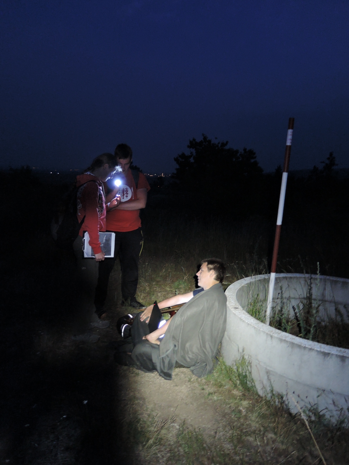 Když se v pondělí ráno vyklubala většina chovanců ze svých spacáků, mohla započít poslední, pouze kratičká, vycházka do Popic a Konic. Viděli jsme pryskyřník rolní, pilát lékařský a ostrožku stračku. Z fauny nás zaujala obrovská Hymenoptera drvodělka. Samečci této včely ,,machrovali“ okolo sloupů a snažili se zahánět cokoli, co letělo poblíž, ať už to byla vlaštovka, motýl nebo jen hozený kamínek. Jak už jsem zmiňovala, procházka to byla kratší, a tak jsme celé odpoledne strávili na faře, napjatě čekajíc, co si na nás organizátoři připravili na dnešní večer… Začalo to poznávačkou, která se skládala z organismů dříve umístěných na výstavce ve farní 108. Pět zvířat a pět rostlin poznala většina účastníků, problém však nastal při určování hub. Célie z toho byla opravdu smutná, a tak jsme se rozhodli, že se je všichni opravdu naučíme. Od té doby všichni poznáme Epichloe typhinu, klanolístku i hvězdáka vláhojevného. Okolo páté nám nakonec Míša osvětlil, co že se to na nás chystá – labyrint! Dostali jsme mapy vřesoviště, kde byly plus mínus zaznamenány polohy Míšových snopců pro Ceratiny. Každý měl vlastní číslo a některé obsahovaly otázku. My jsme měli za úkol pobíhat po vřesovišti a pomocí správné sekvence otázek se dostat až k cíli. Utvořili jsme tedy dvojice a v půl osmé prví pár vyrazil do vřesoviště hledat správné snopce. Zezačátku to docela šlo, avšak když začal padat soumrak, začalo být čím dál tím těžší hledat drobné svazky celíku s číslem, které jsme potřebovali. Některé dvojice se dost zamotaly, hlavně na stanovišti, kde otázku pokládal Albert a Míša. Kdo měl štěstí, dostal se až na stanoviště u posedu, kde hlídala Evča, odtud už nebylo k cíli daleko. Po celou dobu soutěže nesla se do okolí Albertova hudební exprese, která nám tak zpříjemňovala pobíhání po vřesovišti. Labyrint byl nakonec ukončen až ve dvě hodiny ráno.