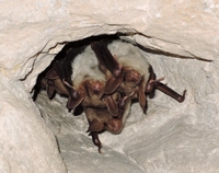 Ráno jsme vyrazili na výlet, vše vypadalo krásně, jenomže vlaku cestou upadlo kolo, takže jsme museli jet přeplněným autobusem a jak tomu čert chtěl, tak z hromadou naštvaných důchodců s holemi. My jsme se však nedali a po lítém boji o autobusové dveře jsme s hodinovým zpožděním dorazili do Radotína. Tam jsme nastoupili do vlaku a jeli do Srbska, nikoliv tedy do země, ale do vsi nedaleko Berouna nacházející se v Českém krasu. Již u nádraží se Zbojník zastavil a začal povídat něco o houbách na meších, my s Albertem jsme zatím krmili dinosaury druhu Gallus gallus. Nakonec jsme tedy dorazili do lomu Alkazar v Srbsku. Lom má zajímavou historii. Až do druhé světové války byl Alkazar (nebo také Hostim 1) vápencový lom jako každý jiný. Brzy se však stal středem pozornosti Němců. Cílem nacistů bylo vybudovat podzemní továrnu na výrobu tajných leteckých součástek, projekt měl krycí jméno Kainit. Tento monumentální projekt kladoucí si za cíl spojit Srbsko s, asi patnáct kilometrů vzdáleným, lomem Velká Amerika, nebyl nikdy dokončen a utnul ho konec války. Dnes je část štol zabetonovaných a je v nich uložen radioaktivní odpad. Zajímavé jsou především z hlediska zimujících netopýrů, za kterými jsme se šli právě podívat. Bohužel bylo příliš teplo a menší druhy netopýrů (slangově netopééři) se již potulovaly po krajině. Chodby byly však stále posety netopýry velkými (Myotis myotis) a tak jsme si s nimy mohli konečně udělat selfíčko na fejsbůk. Kromě netopérů v našem okolí seděly na zdech můry sklepní (Scoliopterix libatris) a píďalka jeskynní (Triphosa dubitata) z nich občas koukala plodnice nějaké parazitické houby.