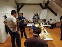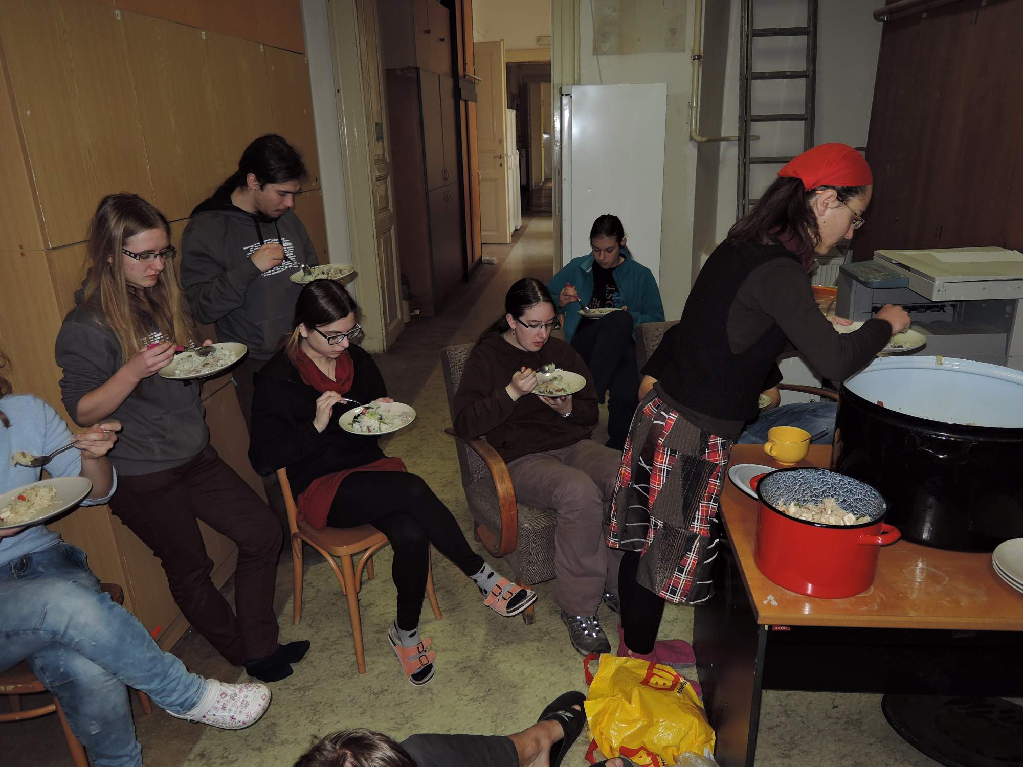 V noci byl uskutečněn ideonákup, ale jedlých surovin na stole moc nepřibylo. Nejspíš byly snědeny už po cestě. Nemohlo chybět ani mikroskopování a hlasitý zpěv (ovšem jen do té míry, aby nebyly rušeny sýkorky za několika dveřmi).
