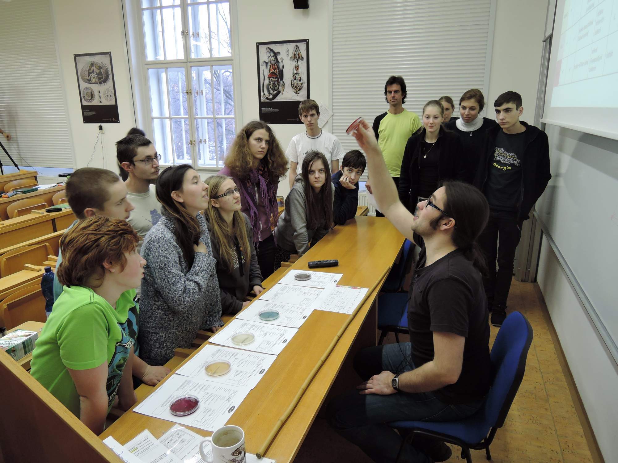 Tři přednášky v řadě je dost, proto vmezeřená vycházka do botanky přišla vhod. Tempo bylo sice, řekněme, botanické, ale hlavy se nám provětraly a naplnily novými postřehy z taxonu Archeplastida. Tím se 27. FN nachýlila ke konci, avšak zbývala ještě jedna přednáška – opět o bakteriích, ale z laboratorního a medicínského hlediska. Takto nám je přiblížil Jaroslav Nunvář. Dotkli jsme se kultivace teoreticky i prakticky (tj. několika petrisek s koloniemi).