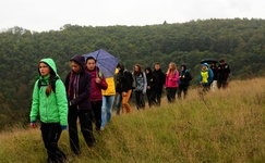 Sobotní budíček přišel příliš brzy, i když rozpis tvrdil něco jiného. Vlak jsme pak stihli s takovou časovou rezervou, že někteří reptali, že mohli déle spát. Jeli jsme do Radotínského údolí, kde jsme pátrali po zkamenělinách. Počasí nám úplně nepřálo, ale co bychom to byli za biology, kdyby nás od prohlížení kamenů odradil drobný déšť? Tak se nám nakonec podařilo objevit dost zkamenělin, aby měl David o čem povídat. Když nám bylo nejhůř, objevil se Hejkal se svou krosnou, ze které vytáhl deky, přenosný gril, vše, co se ještě ráno nacházelo na predivním stole a vepřové koleno navíc.