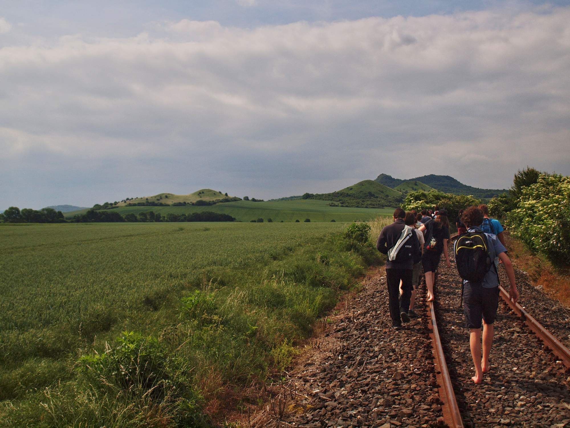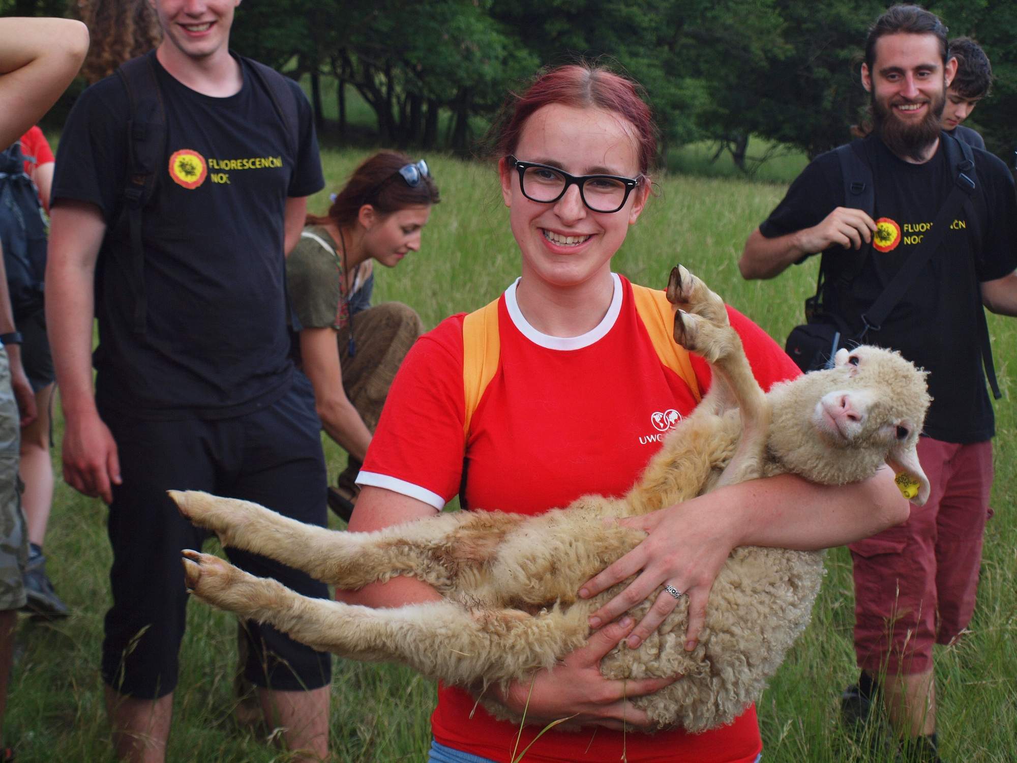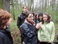Ve čtvrtek ráno byl brzký budíček. Po snídani jsme vyrazili na exkurzi na Oblík, který je sice relativně blízko u Velemína, ale dopravní spojení k němu není zcela ideální. Z nádraží jsme vyrazili po kolejích, a pak přes pole a les až na vrch Oblíku. Tento kopec je velmi výjimečný, neboť se na něm nachází step. Viděli jsme zde hlaváček jarní, bělozářku liliovitou, lilii zlatohlavou, několik druhů kavylu, otakárka fenyklového i ovocného a spoustu dalších myšiček (a také lebku jedné myšičky). Jedno z největších lákadel tohoto kopce - dudka chocholatého, se nám bohužel spatřit nepoštěstilo. Po přestávce jsme vyrazili zpět dolů a cestou Vojta našel jehně zamotané do spadlého ohradníku. Vymotali jsme ho, Kristýna mu stanovila diagnózu a poté jsme ho odnesli na blízkou farmu. Tam jsme našli paní, která si jehně vzala, ochotně nám ukázala farmu a stroje na zpracování kravského i ovčího mléka a dokonce nám každému dala na ochutnání skleničku vynikajícího jogurtu a kousek ovčího sýra. Poté jsme si tam každý i něco koupili. Byla to velmi příjemná zastávka, až na to, že jsme kvůli ní museli jet pozdějším spojem s několika přestupy, kterým jsme se dostali zpět do Velemína až po půl jedenácté večer. Následovala večeře na zahrádce obohacená o interakci s domorodými obyvateli a v pozdních hodinách pak opět exprese, především hudební.
