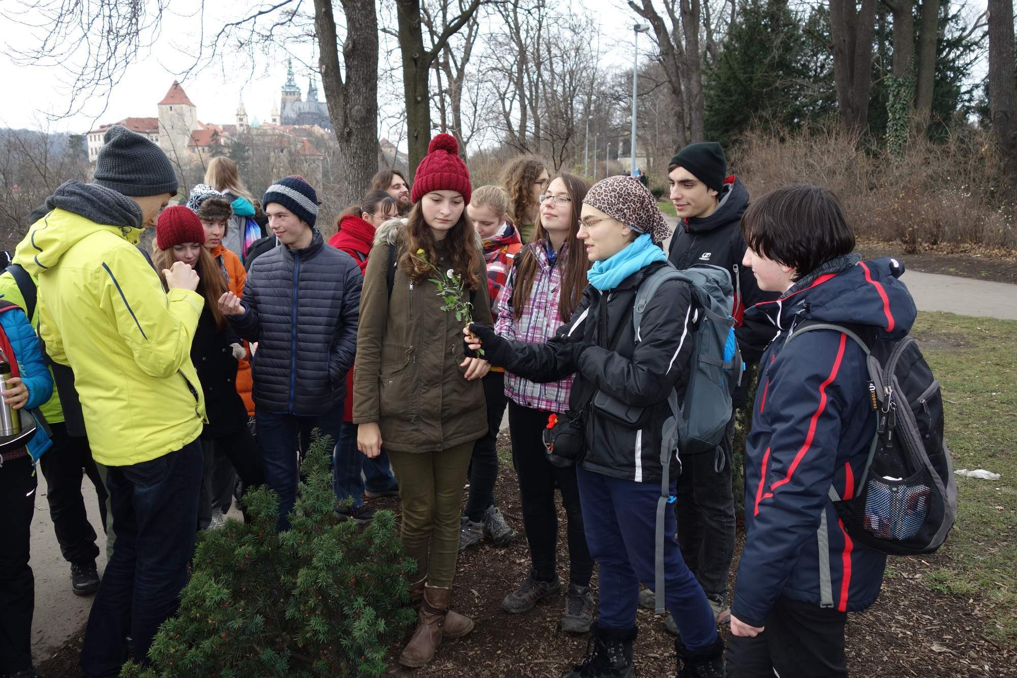 Budíček nás nelítostně vzbudil v osm hodin. Po snídani jsme vyrazili na exkurzi do Ořechovky. Čekání na tramvaj byla vcelku nuda, protože Vojta Koštíř chytil jenom jednoho holuba. Tramvaj nás dovezla do stanice Baterie, zde jsme se pokochali biodiversitou, dokonce jsme přes nepříznivé podmínky nalezli i nějaký hmyz. Přesunuli jsme se o pár set metrů dál, pod prastarou vrbu u níž se demonstrovala další biodiversita a někteří bojechtiví jedinci, v čele s Mgr. Tomášem Dvořákem, svedli dosti bolestivý souboj prostřednictvím vrbového proutí. Poté jsme se již vraceli na viničnou 7, zastavili jsme u Metronomu, kde jsme poobědvali. Když jsme se já (Hejkal) s Vojtou Koštířem dozvěděli že se vrátíme přes Karlův most, spředli jsme skvělý plán, že chytíme holuby a prodáme je bohatým japonským turistům, Vojta nejdřív chytil labuť, ale pak jí pustil a ulovil dva holuby. Navzdory nehorázným slevám, a velmi „obchodnickému“ křiku, si holuba nikdo nekoupil, docílili jsme jen toho, že jedna paní spadla a selfie s holubem si udělali jen ti lidé, kterým jsme holuba strčili před obličej, když se zrovna fotili. Po návratu byla hodinka na odpočinek, následovaná první částí účastnického semináře o ořeších, přihlášených mikropřednášek bylo opravdu mnoho, Ze všech vyčnívala ta Albertova možná proto, že nebyla na téma ořechy, ale o jistém Janu Měšťanovi a jeho očividně nesprávných názorech na evoluci a geologii, které dávala smysl asi tak jako že zemské jádro je z jetele. Večer jsme oslavili vánoce, zpívali jsme koledy, jedli cukroví, a rozdávali dárky, Tyrkys dal velké DÍKY za dvoulitrovou krabici jablečného džusu.