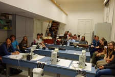 Po zdárné registraci zpestřené nahrávkou konfrontace zástupce druhu Castor fiber a příslušníka polského národa, známou jako Ty chuju bobrze, se jako vždy přesouvám do učebny 108. Kvůli přestavbě fakulty se však Vratislavice posunuly asi o dvě patra dolů, což mělo za následek několik podivuhodných fenoménů – zjistil jsem nižší abundanci binolup a mikroskopů, stejně tak rozšíření exprimační plochy k uměleckému projevu kreslířskému. Nepovšimnut nemůže zůstat ani přesun predivního stolu do značné blízkosti Ó fluorescenčního mikroskopu, přímo do učebny 108. Po představení a zhlédnutí prvního úspěšného (a několika neúspěšných) telefonátů nadšeného prodejce kabelové televize scházíme dolů do učebny fotochemie. Tématem této fluonoci je komunikace, vyslechneme si tedy přednášku od kandidáta na rektora Univerzity Karlovy Honzy Černého o buněčné signalizaci. Po ní následuje přednáška Zděnka Janovského o komunikaci rostlin, která se pro nadšené opylovače protáhne až dlouho do večera. Povečeříme a počne exprimace a mikroskopování. Druhý den uléháme v učebně fotochemie. Vstáváme velmi brzy, ještě před sedmou. Posnídáme a vyrazíme na step v Hostimi, poblíž Sv. Jana. Celou výpravu vede Vojtěch Koštíř, jenž vybral toto biodiversitou oplývající místo jako objekt hodný menežmentu. Počínáme stručným výkladem o lokalitě, následuje výšlap na kopec, odkud se kocháme překrásným výhledem po okolí. Poprvé také potkáváme kozy a jejich Pocemy sensu lato, zatím jako plaché a zdrženlivé myšičky. Dělíme se do několika pracovních týmů a rozcházíme se na svá stanoviště. Menežujeme, až se z nás kouří. A nekouří se jen z nás, zakládáme i pár ohýnků, kde spalujeme signifikantní množství odtahaného dřevstva. Společnost nám dělají nyní již značně přítulné kozy s několika Pocemy, po chvíli se však ukáže, že pouze prahnou po našem jídle a přezkách od batohů. Občas lze zaslechnout mrmlání o vysoké abundanci nadzemních částí zástupců rodu Rosa. Pozoruji velice zajímavý fenomén – delší doba strávená poblíž velkého ohně pozměňuje lidskou psychiku. David navrhuje uspořádat čarodějnické procesy, z mnohých úst znějí návrhy na opékání a predaci přítomných, nic netušících koz. Vidina velkého grilování se následně rozplývá, když počne oběd a oheň dohoří. Po obědě explorujeme biodiversitu. Nachází se jí zde neuvěřitelné množství – pozorujeme chvostoskoky, škvorovky, chvostnatky, rybenky a všemožné skálovky, skákavky, slíďáky či závornatky. Zběsile otáčíme kameny a pod každým nalézáme nové druhy. Zkrátka fascinující. Po chvíli sejdeme dolů, kde se opět shromáždí všechny pracovní skupiny. Předáváme si své zážitky, dozvídám se, že část výpravy měla tu čest pozorovat i užovku hladkou – tomu jsem však, bohužel, přítomen nebyl. Když skončíme, popadneme batohy, nyní odlehčené o zpredované predivo a rychlejším biologickým tempem vyrážíme směr fakulta. Po cestě se zastavíme u monumentální skály, u které opět explorujeme biodiversitu, již však značně kratší dobu. Odtud razíme do Srbska. Po cestě potkáváme lačníka – nejedná se o jakousi obskurní přezdívku, pouze o plže Zebrina detrita (který je samozřejmě naprosto fascinující svou roztomilostí). Ze Srbska jedeme vlakem na Smíchov a odtud procházkou na fakultu. Albert si pro nás připravil povídání o mezioborovce na Ukrajině – na Alberta překvapivě krátké, ale přesto nabité fenomenalitou. Začínám se ještě více těšit do Itálie. Opět začíná neřízená exprese, doplněná o kochání se hrošíkem liberijským, zastoupeným Albertem. Ještě před pí ulehnu a zamhouřím oči. Téhož dne nás ještě čekají dvě přednášky – první od Davida, o pádu sondy Cassini. Myslím, že nejsem jediný, v kom zanechal Davidův výklad nadšení, že přeci jen nejsme ve vesmíru sami. Poté nám Klára vypráví o adaptivním zbarvení a ukazuje mnoho barevných myšiček. Po skončení jsme nasyceni čínskými nudlemi a tím FN končí – pro účastníky expedice do Itálie se koná ještě seminárium, ve kterém nám Míša s Albertem sdělí mnoho užitečných rad, jak zdárně expedici absolvovat. Pak přichází deentropizace, loučení a definitivní konec. Není však třeba si zoufat – vždyť za necelý týden už budeme exprimovat v autobuse směr Itálie!