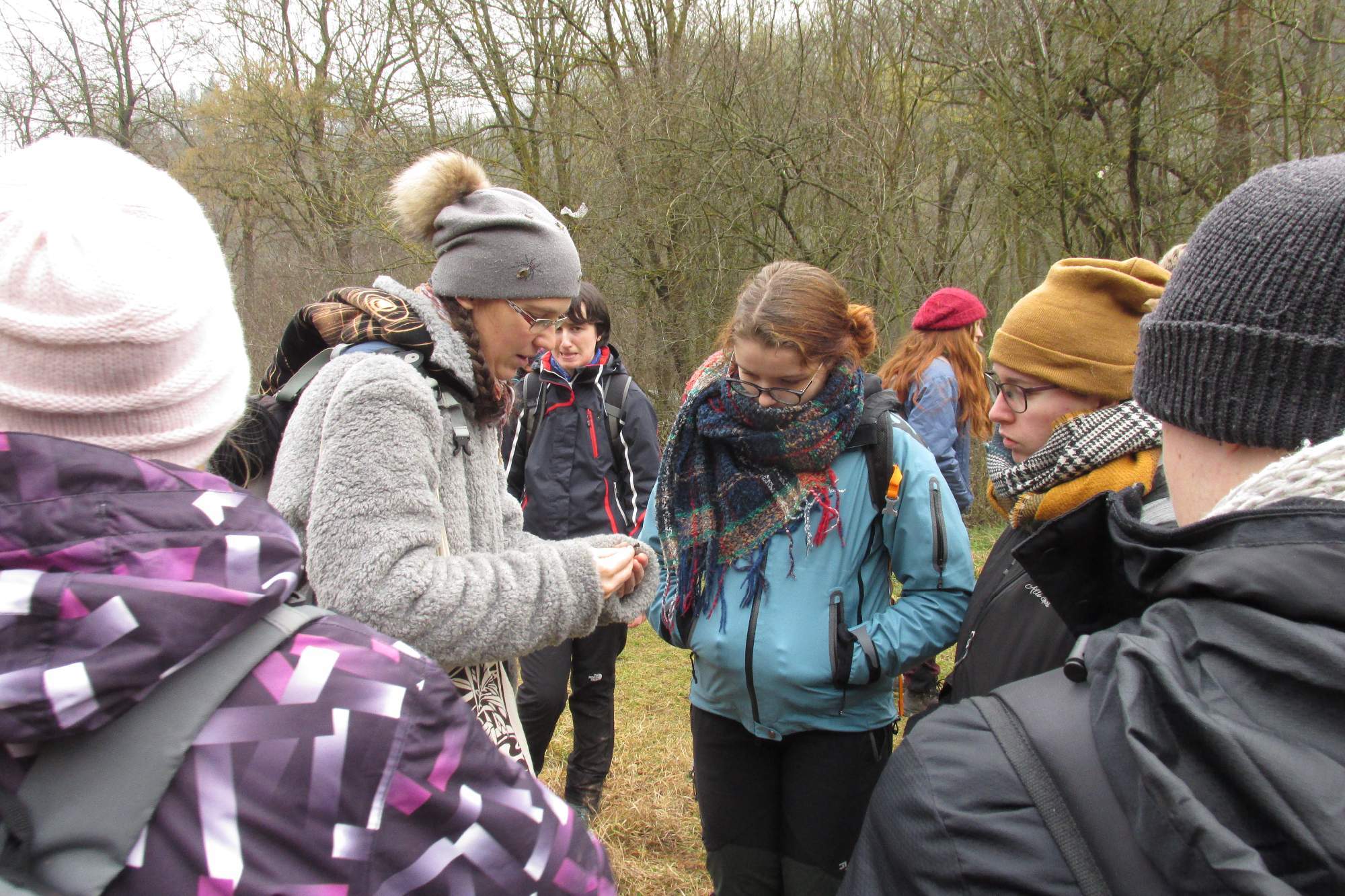 Sobotní ráno jsme si užili chůzí na vlakovou zastávku a následným dospáváním ve vlaku až do stanice Kladno-Dubí a vydali jsme se na Vinařskou horu, cestou jsme potkali celé spektrum myyyyšiček od uschlých mrkví přes skelnatku, velehejno bledulí, kalorku kopřivovou, drabčíka až po křídlatku. Také jsme se zastavili u postarší vrby, u které bylo poznat, že byla zasazena jakožto velikonoční pomlázka a jelikož byla dobře ořezaná, tak nám přišlo velmi ideologické u ní falešně zazpívat „Nechte stromy hnít“. Při návratu nás přivítala hora krabic od pizzy, která se ale bohužel brzy metamorfovala na hromady prázdných krabic od pizzy. Na popud Alberta, který byl znepokojen znalostí češtiny některých osob z řad biologů (zdravím Míšu Mikáta a Tondu!), jsme si všichni napsali diktát. Po napsání tohoto pravopisného cvičení započalo promítání fotek z Panamy Zbojníkem, bylo tam plno roztomilých pucíků, bohužel čas od času Albert nevydržel býti trpělivým učitelem a jelikož se rozhodl, že bude diktáty opravovat v přednáškové místnosti, tak se co chvíli ozýval hlas promlouvající do duší chybovačů. Naštěstí Zbojníkovi to příliš nevadilo, snad kvůli tomu, že je mu jedno vše kromě cibule, Kláry a malých oranžových, z nichž poslední jmenované byly občas i promítané, tedy nebyl důvod se rozčilovat. Snad jsme Alberta uklidnili tím, že 10 z nás nemělo jedinou chybu a poté následovala spousta lidí, kteří měli chybu jednu (jako například já, protože jsem ignorant ohledně čárek – schválně kolik mi jich bude chybět tentokrát) či podobně malé n chyb. Při noční exprimaci se ke psu Smyčáka pobíhajícímu po chodbách přidal i Vetřelec. Dle toho, že ráno už jsem Vetřelce nepotkala, ale to roztomilé štěně ano, usuzuji, že bychom si na něj měli dávat pozor.