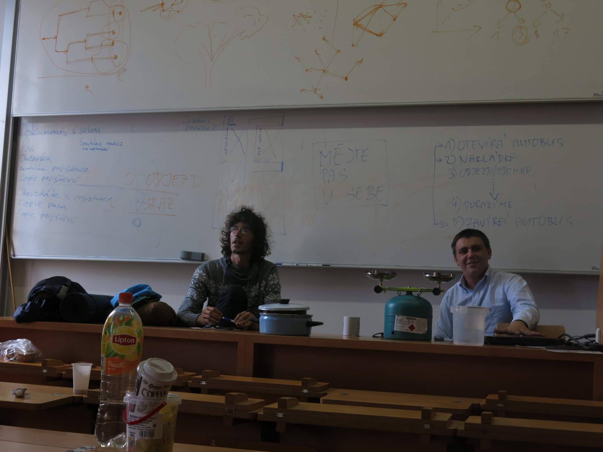 První Fluorescenční noc roku 2018 byla zahájena mírně humanitně laděnou přednáškou doc. Daniela Frynty o vývoji jazyků. Kromě nového vědění o jazycích a mnohých nečekaných souvislostí, jsme si z přednášky odnesli i praktická fakta, například že máme dělat to, co už někdo objevil. Vzhledem k prostoročasové charakteristice akce byla její signifikantní část ovlivněna kulturním fenoménem známým jako „volba prezidenta“, ale do toho nebudu zabrušovat, abych z toho nemusela složitě vybrušovat. Po přednášce a krátké seanci u přílohy k piškotům (pečeného kuřete), následovala organizační část pátečního programu a seznamování, kterému předcházela velmi vyvedená scénka s Horstem Fuchsem a naším superhrdinou pro následujících pět let. Smyčák si s sebou přivedl psa, který bohužel ne vždy sdílel naše nadšení z fluonočních fenoménů, což dával najevo hlasitým kňučením. Po večeři jsme si poslechli přednášku Zdeňka Janovského s názvem Krajina očima rostliny. Dle jeho slov „pohádka o čertkusu“ se protáhla natolik, že bylo nutné udělat přestávku. Tato přednáška se na FN objevila už podruhé, tentokrát obohacena o matematickou složku, naši pozornost ale upoutala především zdařilá animace zoochorie.