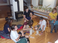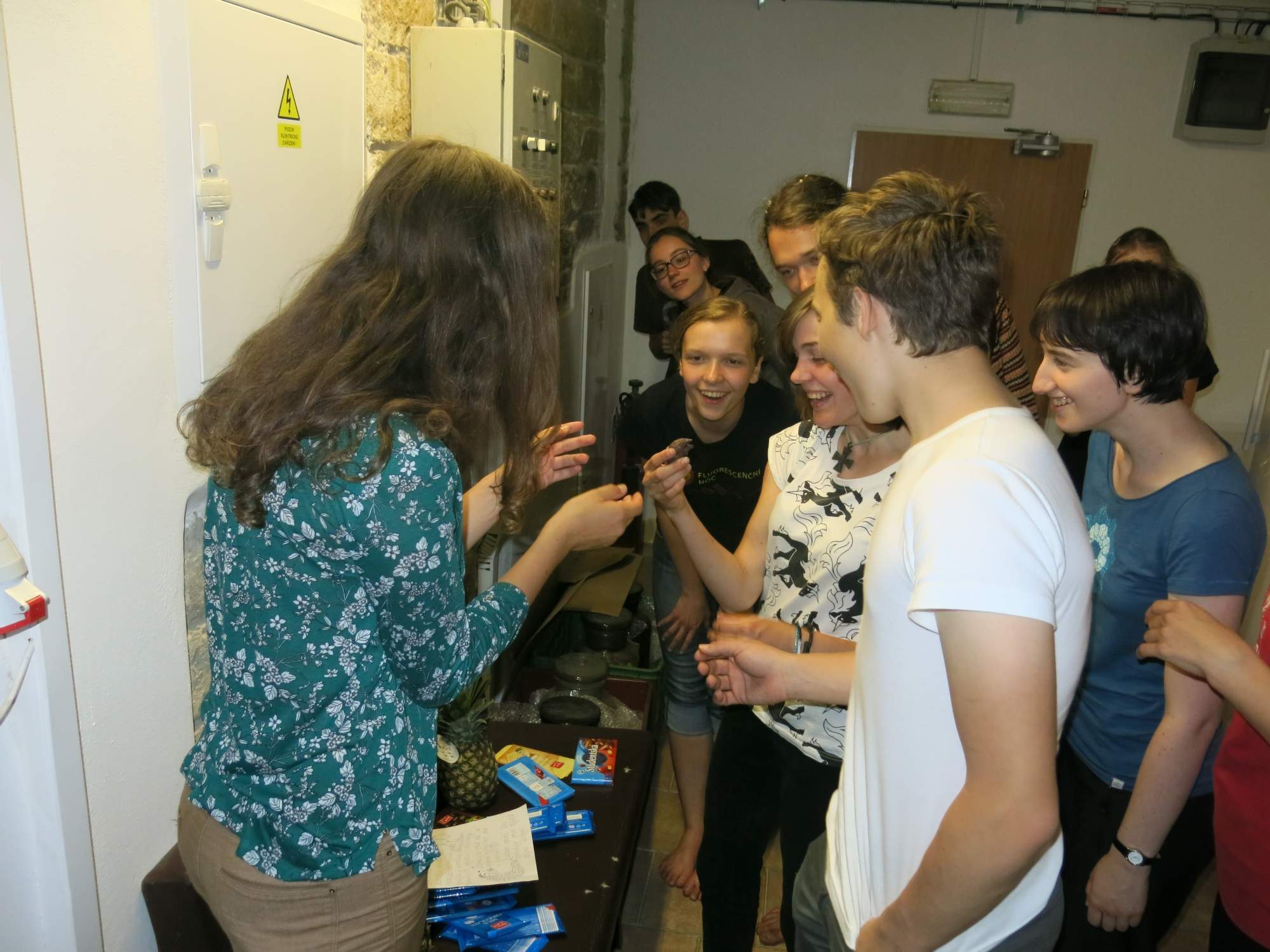 To byla zase jízda. Čtvrtá výjezdní fluorescenční noc, která se konala v Havraníkách v Podyjí. Po několika hodinové cestě autobusem jsme konečně přijeli do Havraníků. Šli jsme se ubytovat do bývalé školy. Hned jsme věděli, že jsme doma, protože jsme zaslechli známý hlas a vzápětí se objevil Albert se sekerou v ruce. Bylo zde málo lidí, protože ti, co přijeli dříve, šli na Skalky na jejich první biologický výlet na této Fluonoci. Když konečně všichni dorazili, začala přednáška o kyjorožkách (Ceratina), kterou přednášel Míša Mikát. Dozvěděli jsme se spoustu zajímavých informací, např. že se Ceratiny nejvíce vyskytují tam, kde jsou klacky s duší, ve kterých hnízdí a že jednotlivé druhy rozpoznáme podle přepážek, jež kyjorožky v hnízdě dělají. Po přednášce začalo jako obvykle představování s oblíbenou otázkou „Vztah k mužům?“. Následovala večeře v podobě opékání buřtů na vošťurácích. Pak již probíhal volný program – povídání či mikroskopování a další aktivity více či méně reproverzní např. fanatické tančení Kačky, k němuž byli všichni přemlouváni. Po ne moc dlouhém spánku a snídani jsme se vydali na celodenní výlet do Rakouska. Nejdříve jsme se zastavili na Vřesovišti, kde jsme našli spoustu biologických fenoménů třeba máčku ladní (Eryngium campestre), jež má různé typy listů či diviznu brunátnou (Verbascum phoeniceum), která kvetla fialově, ale může se zde vyskytovat i v podobě bílých a růžových mutantů. Co se týče myšiček, našli jsme larvy slunéček sedmitečných (byla jsem pyšná, že je již poznám) nebo nádhernou hranatku obecnou (Phymata crassipes), jejíž přední nohy vypadají jako přední loupeživé nohy kudlanky nábožné (Mantis religiosa), která se tu také vyskytovala v nemalém počtu. Po překročení hranic s Rakouskem nám zanedlouho došla voda, a tak jsme poslali několik lidiček do nedalekého městečka Retz. Na „vodní skupinku“ jsme čekali na „Ságovém kopečku“, kde se podařilo najít kobylku ságu (Saga pedo), která nemá křídla, je největším druhem kobylky v ČR a živí se sarančaty i kudlankami. Chytili jsme také několik krajníků pižmových (Calosoma sycophanta) a pakudlanek jižních (Mantispa styriaca). Konečně přišla „vodní skupinka“, rozesmátá, protože si dali ve městě zmrzlinu (viz. foto), zatímco my jsme se na kopci pražili na slunci. Zanedlouho následovala cesta zpět, která byla velmi buržoazní, ale všichni jsme ji nakonec ve zdraví přežili a kolem půl desáté dorazili zpět. Večeře. Trolení. Spočívalo ve stavění puzzle z PCR destiček a následného bourání. Stavěl se třeba Titanik, který se po nárazu do ledovce rozpadl a Kačka (Čermáková) vykřikla: „Tady plave Jack určitě!“ Slova se také musel ujmout i Albert s historkami „ A líh na bar“ či „Má Albert právo na slevu v supermarketu Albert?“ Řekla bych, že vyplynulo 100% „NE“.