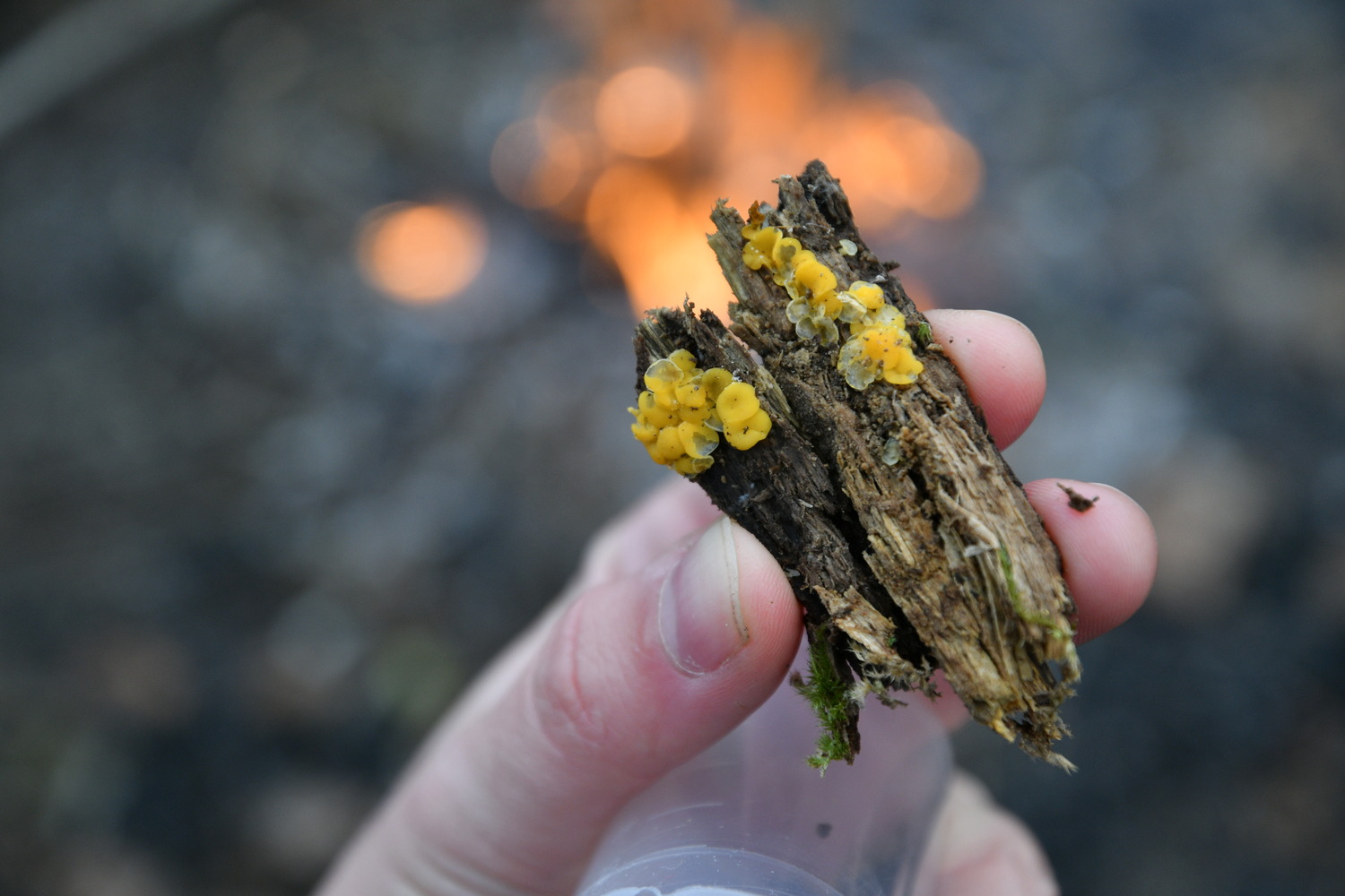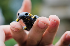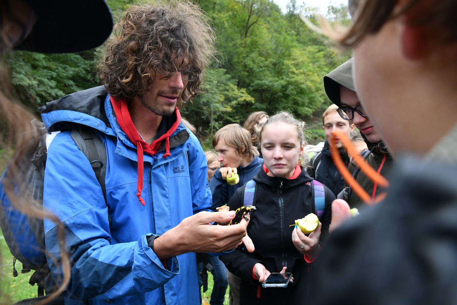 V sobotu jsme se hned ráno vypravili na hlavní nádraží a po krátké cestě vlakem jsme se ocitli nedaleko Davle. Následná exkurze byla vedena do údolí Zahořanského potoka. I přesto, že po naprostou většinu dne vydatně pršelo, se nám podařilo najít mnoho zajímavých organismů, mimo jiné také přejetého ježka nebo několik pozoruhodných hub, nicméně jednoznačným highlightem exkurze bylo několik exemplářů mloka skvrnitého (Salamandra salamandra). Zpáteční vlak nám ujel doslova před nosem, takže jsme se ještě navíc stihli rychle vykoupat v Sázavě. Do dalšího vlaku už se nám podařilo zdárně nastoupit a po návratu na fakultu a příjemném zahřátí horkým čajem jsme se jali mikroskopovat objekty nalezené během exkurze a hrát a zpívat až do brzkého rána, přičemž kolem půlnoci se početná skupinka vydala na ideonákup.