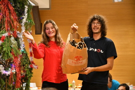 A zlatým hřebem večera se stal vánoční sraz pod stromečkem (letos bylo možné tento slovní obrat naplnit doslovně, neboť kulturně vzdělaní organizátoři pověsili stromeček na trám vznosným vrcholem k zemi). V posluchárně B312 se podávala výborná večeře a spousta dalších pamlsků. A samozřejmě proběhlo velké rozdávání vánočních dárků. Následovala volná zábava, zpěv i povídavé zurčení a obecná exprimace.