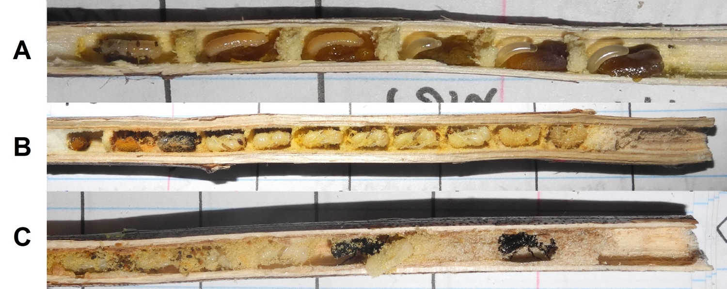 Ve většině případů je v hnízdě kde probíhá zásobování potomstva pouze jedna dospělá samice. U některých druhů ale může být ve hnízdě více samice, obvykle dvě. Jedna pak lítá pro potravu a druhá hlídá vchod hnízda. Mezi samicemi dochází ke konfliktu o to, která se bude množit. Tento konflikt někdy vyhraje hlídající samice, jindy samice, která zásobuje. Často se alespoň trochu ale množí i druhá samice.