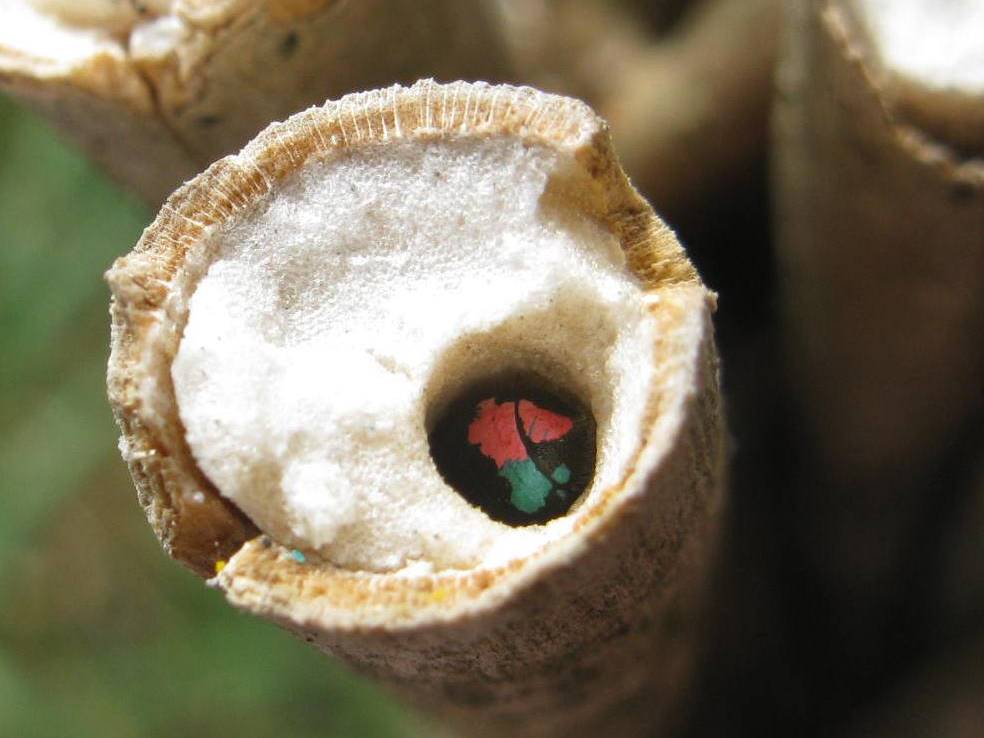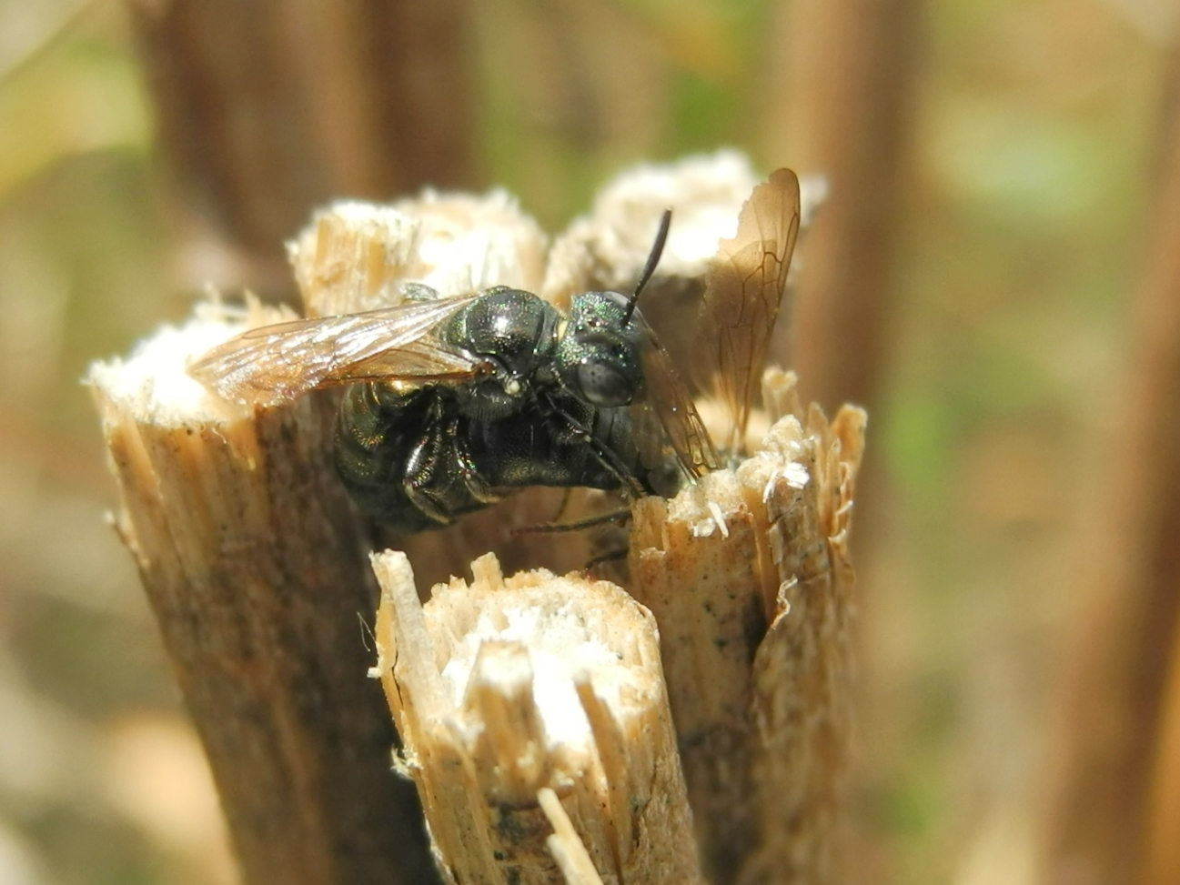 Hnízdí ve zlomených větvičkách rostlin s duší. Oblíbenými hnízdními substráty jsou například (např. ostružiník (Rubus), celík (Solidago), růže (Rosa), bělotrn (Echinops) a bez (Sambuctus)). Větvičky musí být zlomené uschlé, jinak se včela nedokáže k duši dostat a využít ji. Vhodná stanoviště jsou tedy často např. v posekaném křoví v okolí cest.